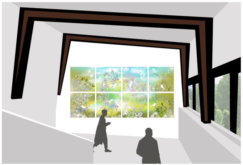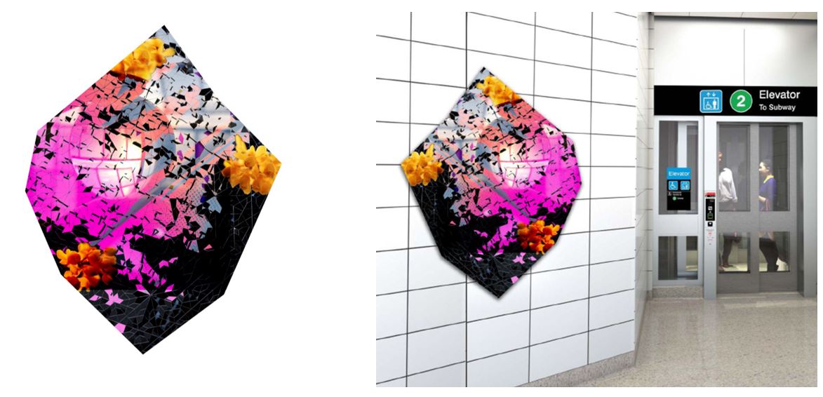 As the sun changes positions throughout the day, and throughout the year, the artwork will interact with various types of light, creating a dynamic environment that offers commuters a distinct experience with every encounter. Reflecting the ever-changing nature of the space as well as the community, Shifting Beauty embodies the flow and movement of daily commuters through its dynamic reflections, while providing a place to pause and behold the ephemeral beauty of life. -
