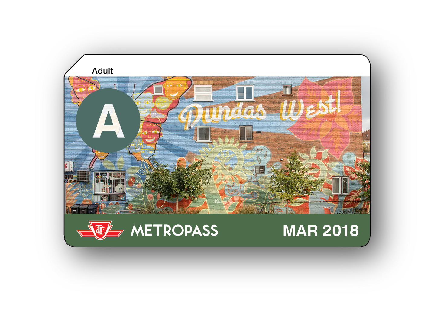 The TTC is rolling out another custom Metropass for March. On sale tomorrow through Mon., Mar. 5, this month's pass features an image of a street mural created in 2007 by artist Jose Ortega for the Dundas West BIA.