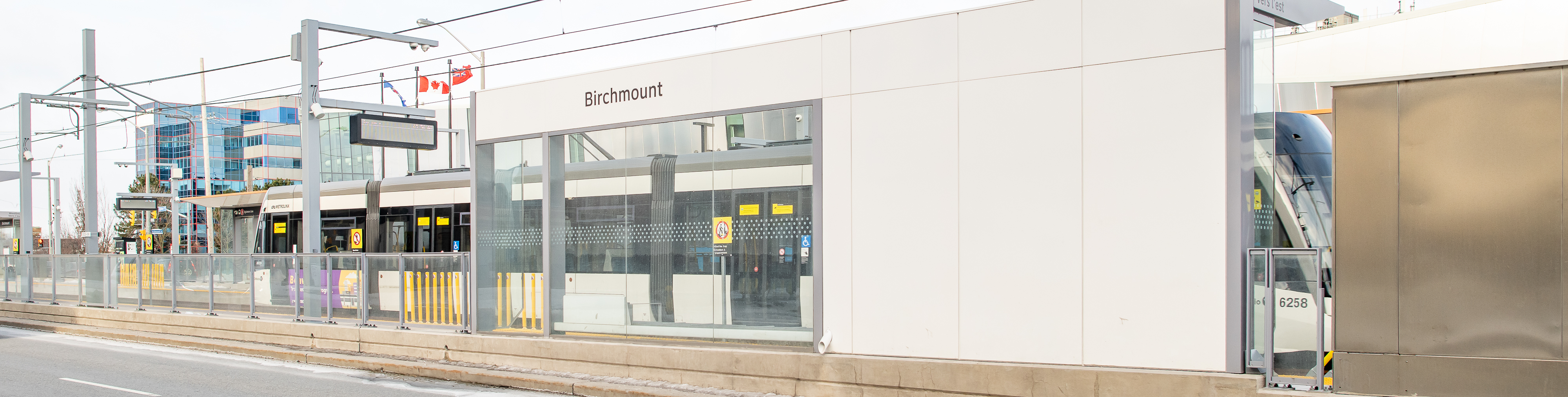 - Westbound towards Mount Dennis, east side of Birchmount.